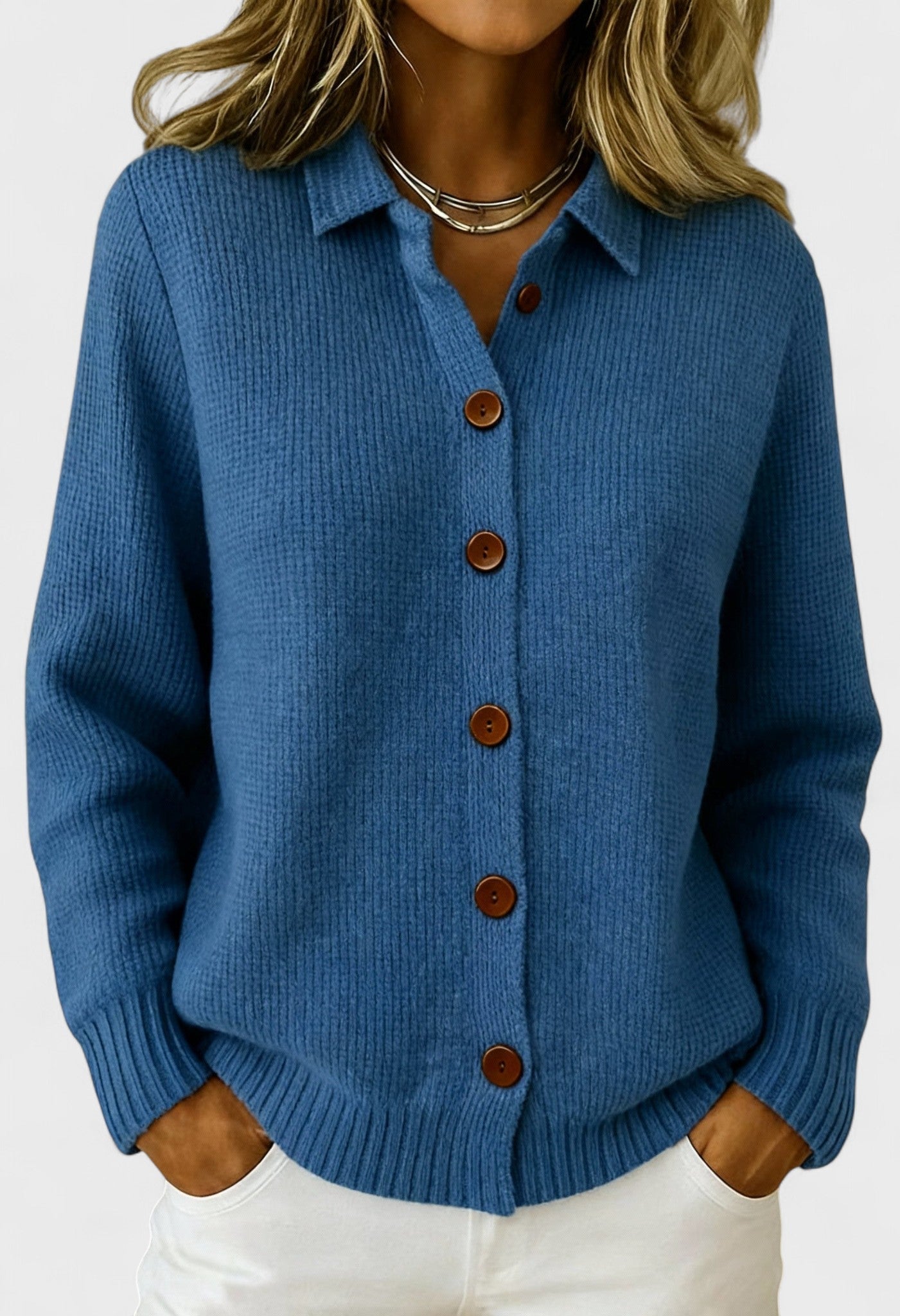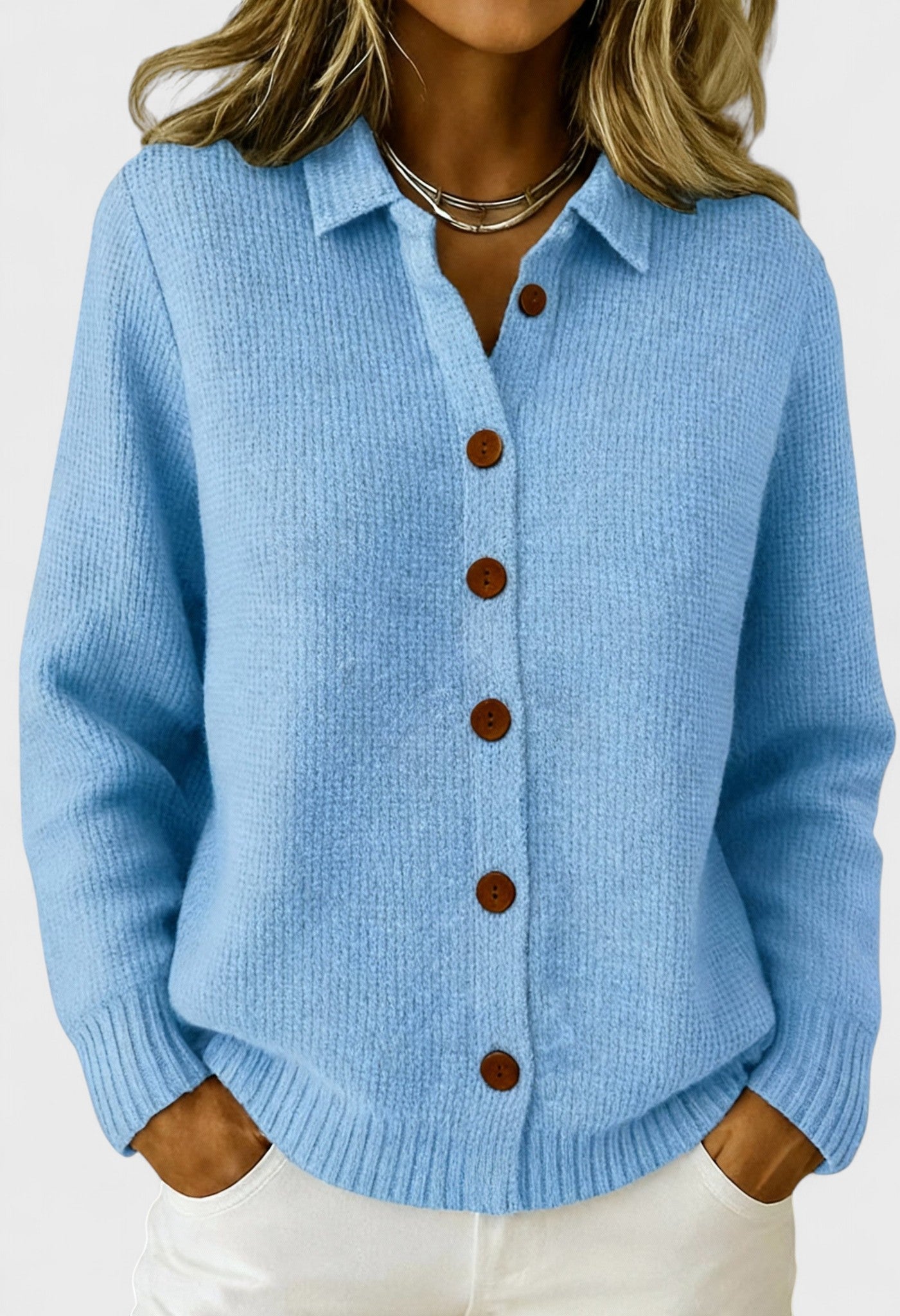 Tämä eleganttikauluksinen neuletakki on suunniteltu tuomaan asuusi lämpöä, mukavuutta ja huoliteltua tyyliä. Sen pehmeä tuntu ja helppo yhdisteltävyys tekevät siitä täydellisen valinnan niin arkeen, töihin kuin rentoihin hetkiin. Tämä malli tuo tyyliisi eleganssia, monikäyttöisyyttä ja miellyttävää käyttömukavuutta.