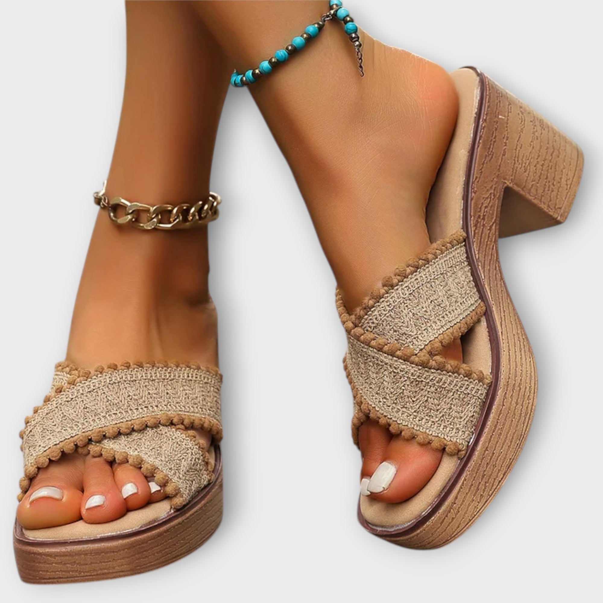 Nämä paksukorkoiset sandaalit yhdistävät modernin muotoilun ja miellyttävän käyttötuntuman. Ristikkäiset hihnat antavat kengille hienostuneen ilmeen ja tukevat jalkaa kauniisti, kun taas leveä korko tuo lisää vakautta jokaiseen askeleeseen. Täydelliset sekä juhlavampiin hetkiin että arjen tyylikkäisiin yhdistelmiin, kun haluat näyttävän mutta mukavan vaihtoehdon.