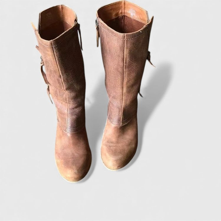 Nämä nahkasaappaat tarjoavat täydellisen yhdistelmän lämpöä, eleganssia ja käytännöllistä mukavuutta. Sääreen ulottuva malli näyttää huolitellulta ja toimii kauniisti monenlaisten asujen kanssa. Ne ovat luotettava valinta kun haluat klassisen, siistin ja helposti yhdistettävän saappaan viileämmälle kaudelle.