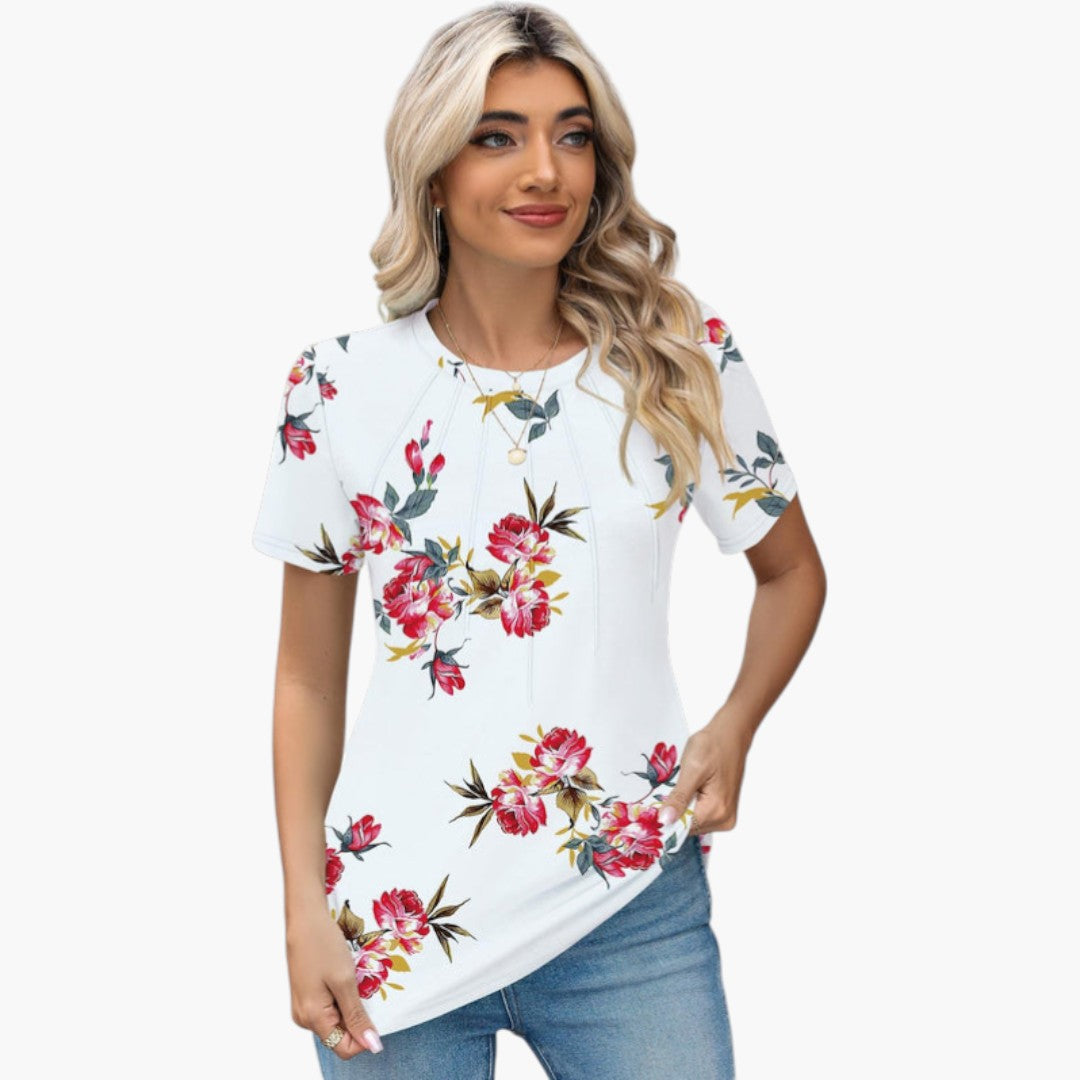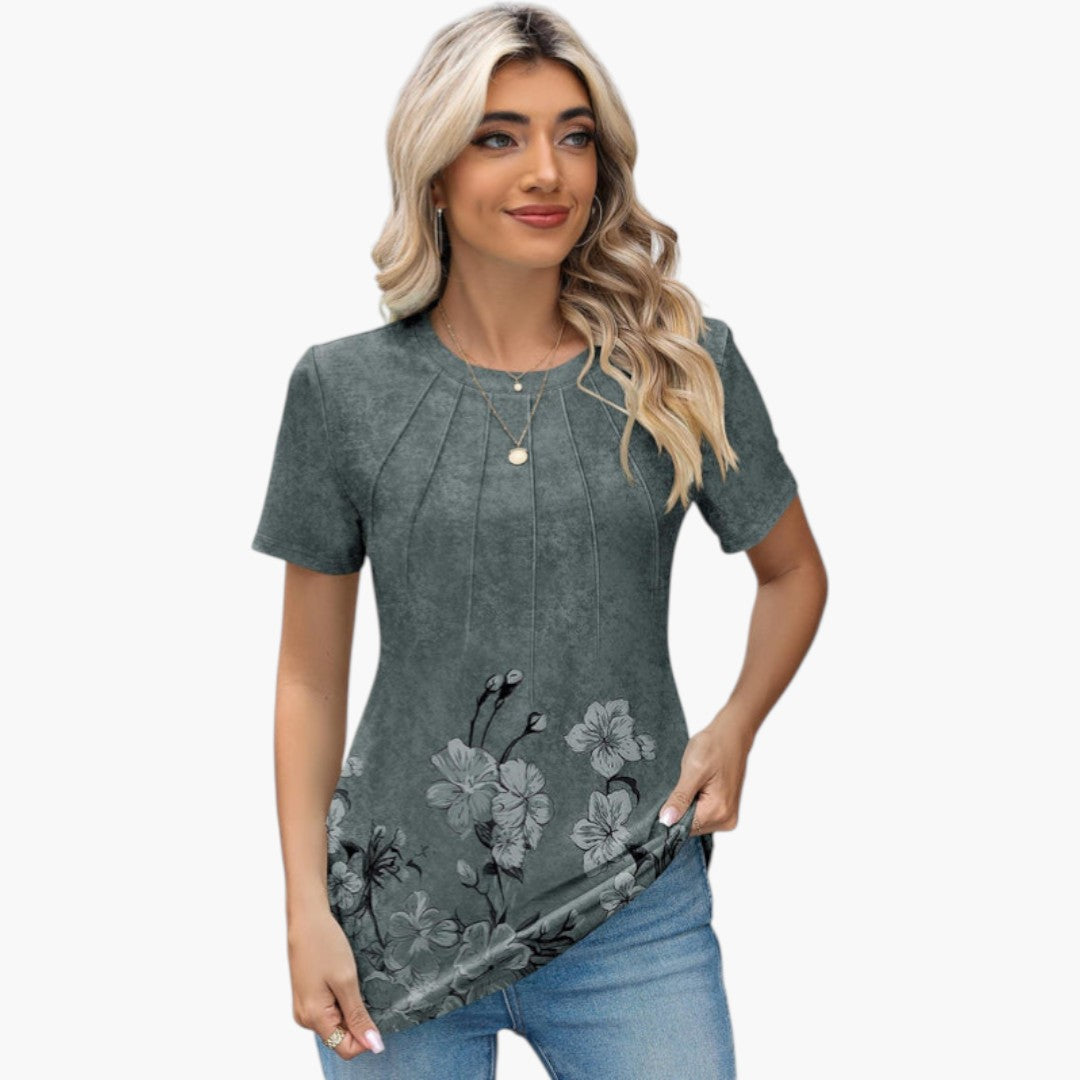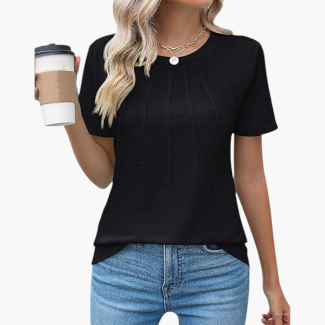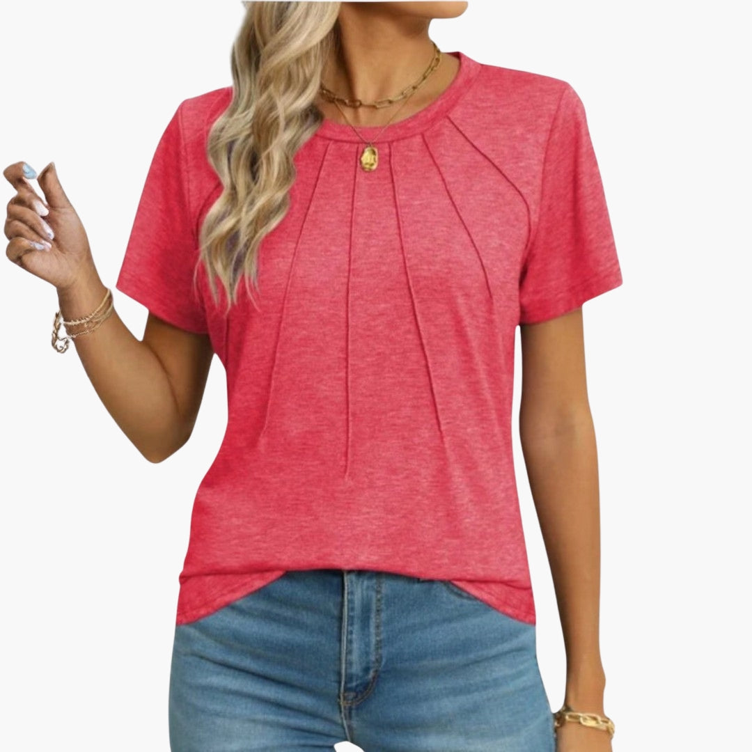 Janina - paita pyöreällä kaula-aukolla ja laskoksilla edessä