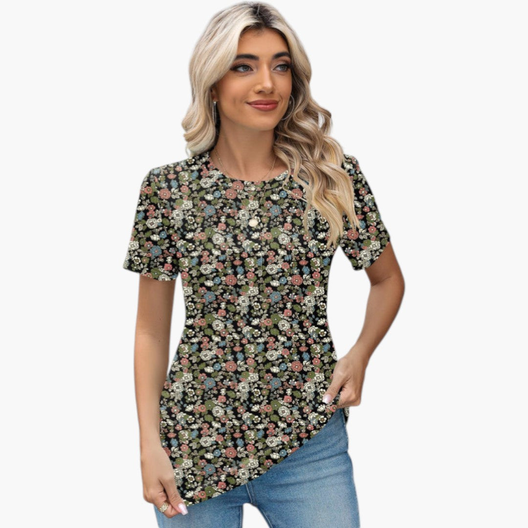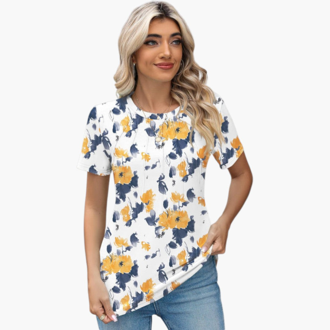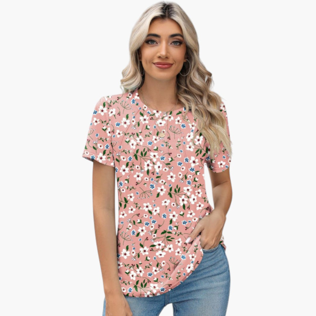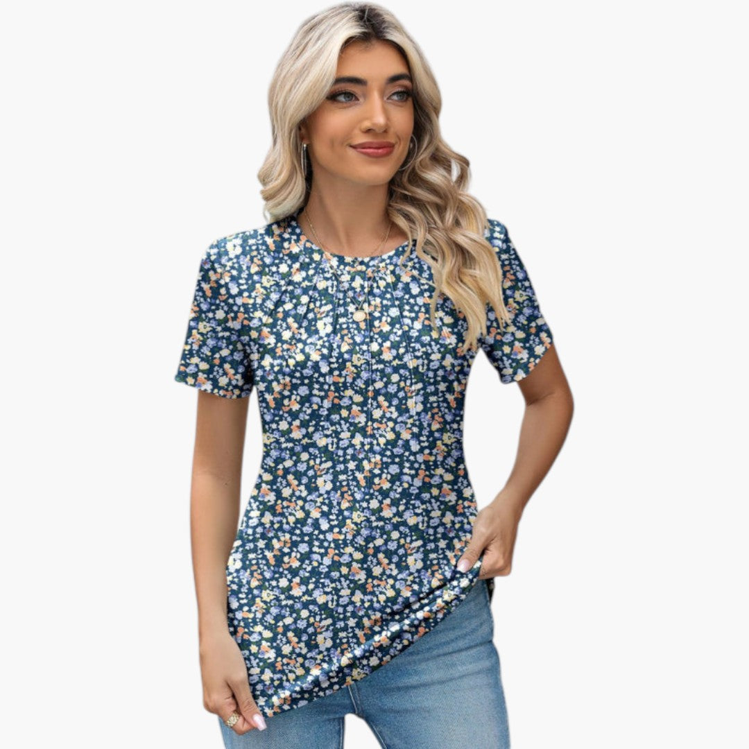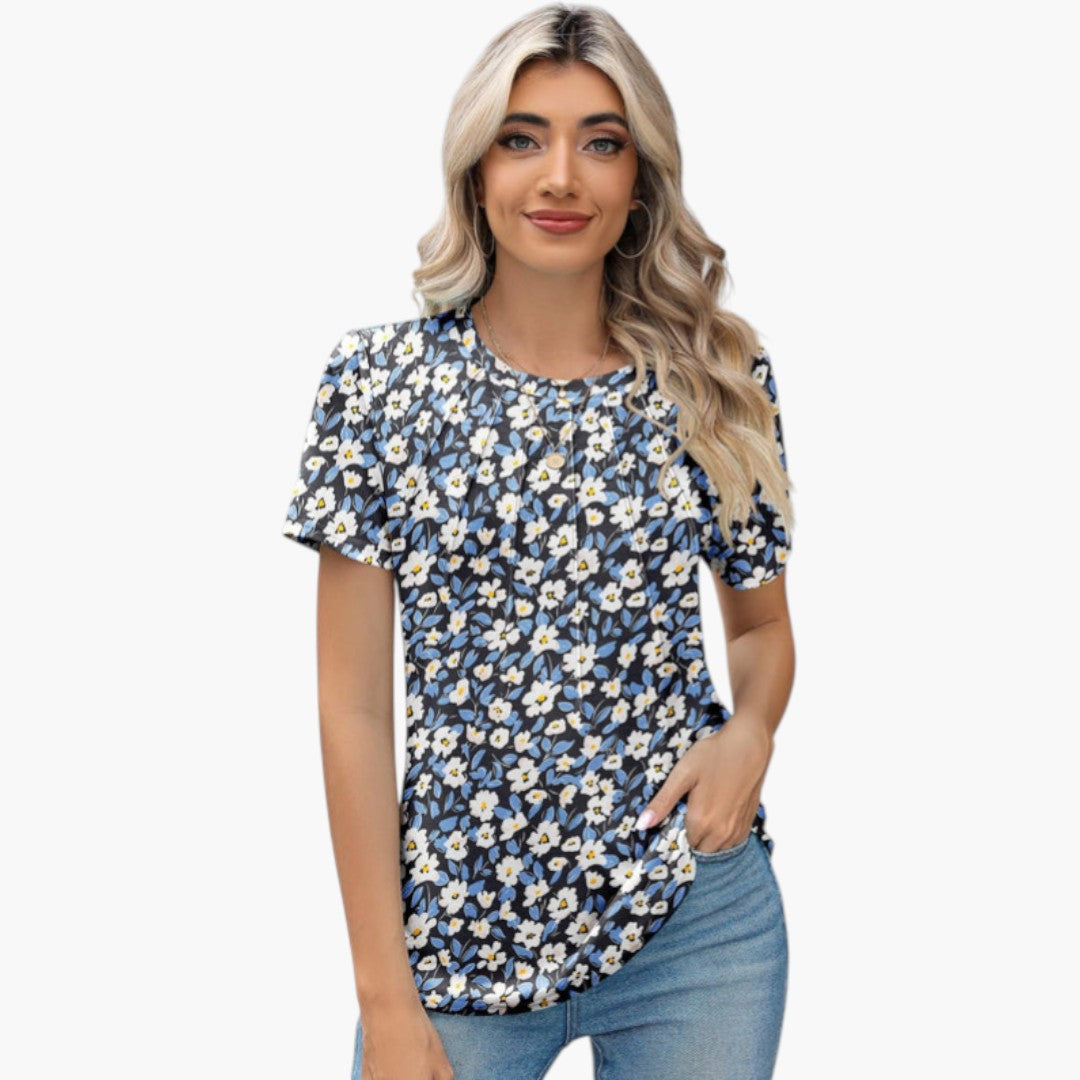 Janina - paita pyöreällä kaula-aukolla ja laskoksilla edessä